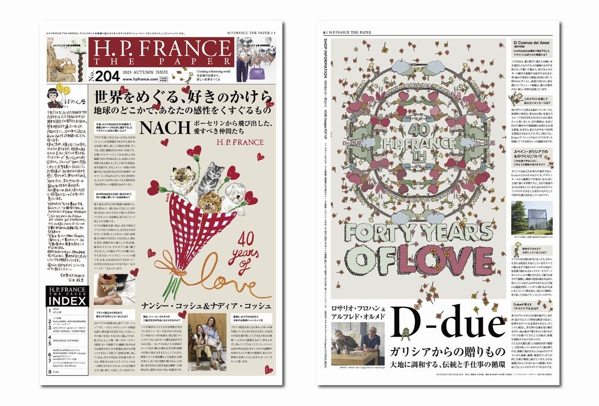 「H.P.FRANCE 40TH - H.P.LOVE 世界をめぐる、好きのかけら」をテーマにキャンペーンを展開しています。メインビジュアルを、長らく親交・取引のあるフランスの陶器ブランド「NACH(ナッシュ)」と、前述したデ・ドゥエのデザイナーに描いていただきました。このビジュアルをはじめ、クリエイターたちの物作りやアッシュ・ぺー・フランスへの思いなどを語っていたただいたインタビュー記事を特設ウェブサイトで配信するほか、タブロイド型フリーペーパー『H.P.FRANCE THE PAPER』も発行して全店舗で配布しています。また、約30ブランドによる40周年記念の限定アイテムの販売も9月にスタートさせ、11月から来年1月にかけて本格化します。