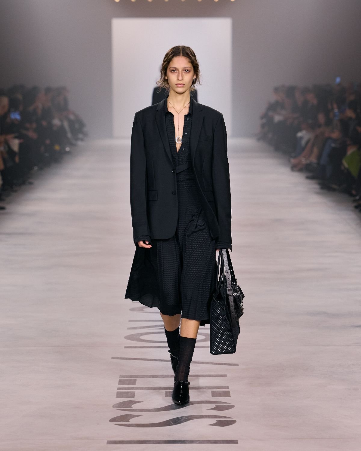 全体的な流れとしては、ブランドの原点回帰や職人技の追求が見られた。イタリアらしい職人技を駆使したアイテムも多く登場していた。各々がブランドのレガシーを生かしつつ、日常を意識した着回しの提案やオンにもオフにも使えるようなワードローブの提案が見られた。また女性の多面性にフォーカスし、マスキュリンとフェミニン、ハードとソフト、インドアとアウトドアなどのコントラストをミックスしたコーディネートも見られた。それはウクライナの戦争が依然として続いており、さらにイラン・イスラエル戦争がミラノファッションウィーク中に勃発したような世界的に不安な状況において、突拍子もない提案やアバンギャルドなクリエーションに走るより、自らの原点に立ち戻り、よりウェアラブルな服やコーディネートを提案し、平和な日常でいられること、常に一人一人が自分らしく普通に振舞えることを願うかのようだ。全体的に黒が主流となるコレクションも、ファッションが守りに入っている雰囲気を感じる。