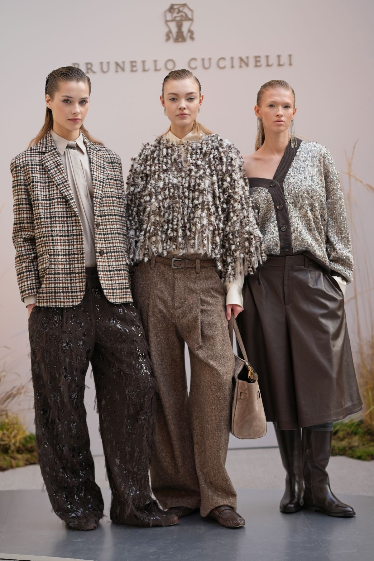 「カントリークチュール」というキーワードで、英国調のカントリームードに、職人技が生きるクチュールの要素を加えたコレクション。日中と夜、屋内と屋外、マスキュリンとフェミニンといった相反するテイストを、それぞれの境界線をなくしたミックススタイルで提案する。チェック、ハウンドトゥース、プリンス・オブ・ウェールズ、ウィンドウペン、タータンといった英国調モチーフを刺繍、ジャガード、プリントシルク、シアーリングなど、様々な素材に使用。多数登場するニットはファー効果やフリンジ風に仕上げたり、スパンコールで装飾したり。テーラリングはマキシからミニ、オーバーサイズからタイトフィットまで、多彩なシルエットで展開し、ブランドのアイデンティティーを強調した。