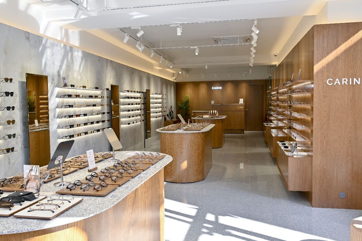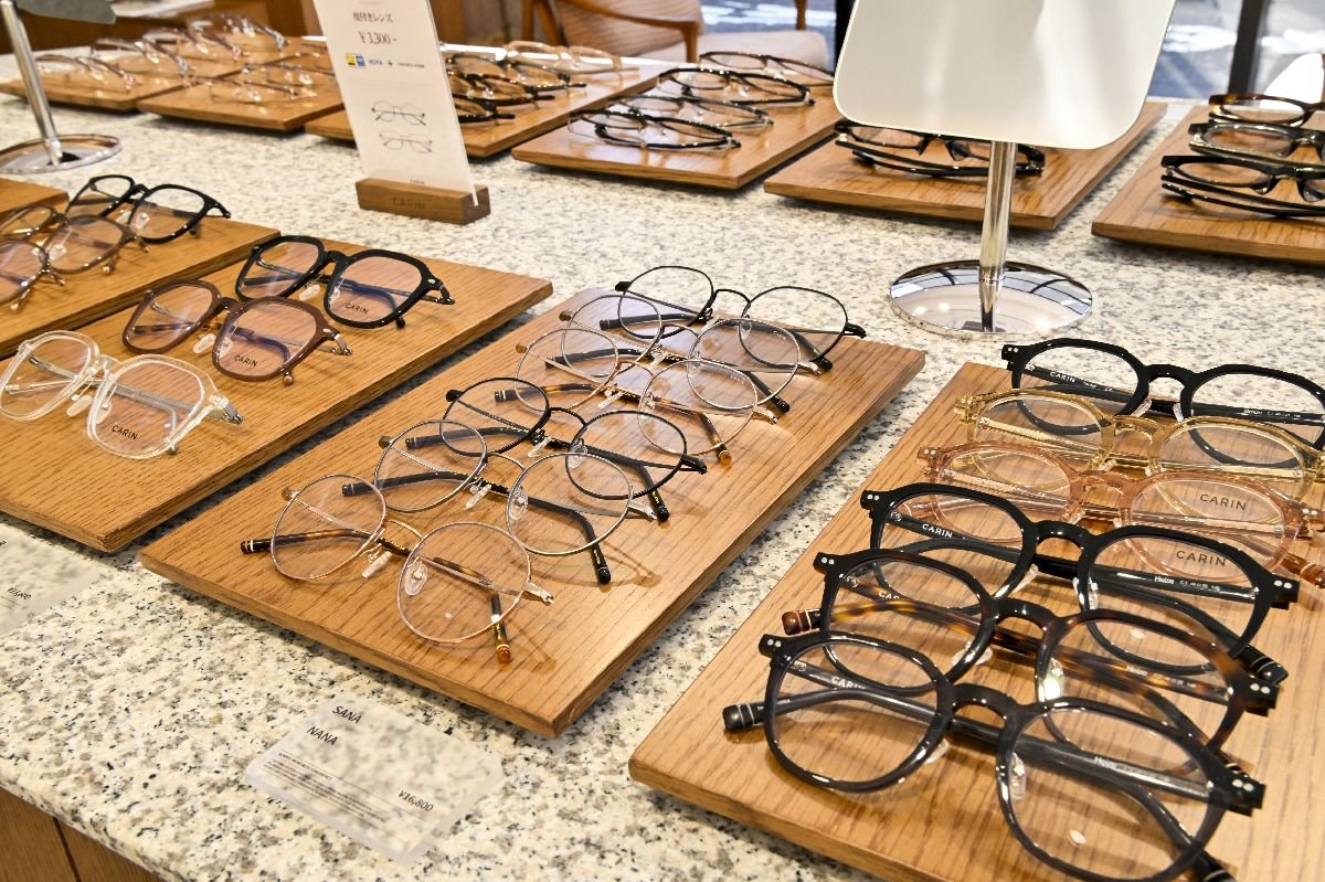 ファッションとしてのアイウェアを展開しながら、専門店としての機能もしっかりと備えているのは、やはりカリンの魅力だ。レンズは単焦点、遠近両用、調光(紫外線で色が変わり、サングラスとしても使用可能)、ブルーライトカット、カラーがあり、オプションでフレームに装着できる。店内には検眼機と加工機を設置し、在庫があるレンズであれば好みで選んだレンズや視力に応じて加工したレンズとフレームを組み合わせ、3300円から最短30分で提供する。また、ブランドの運営会社はカリンと日本の眼鏡専門店の共同出資で設立されているため、その専門店で業務を経験したスタッフが表参道店にも常駐し、「着け心地良く作られたアイウェアをよりフィットさせる」など専門的な接客応対を可能にしている。今後は公式オンラインストアでの試着予約サービスもスタートさせ、来店しやすい環境を整えていく予定。