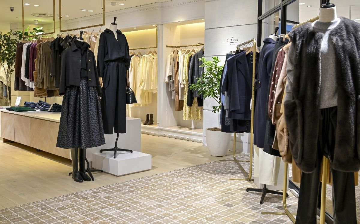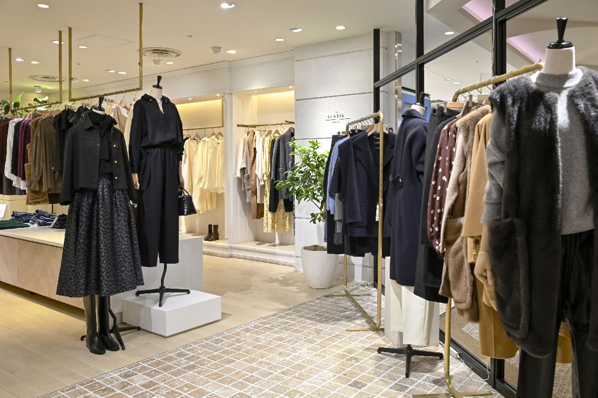 ザ クラスのコレクションはドゥクラッセのカタログのみで展開するアイテムを含め、25-26年秋冬シーズンは約100型を展開。通期では約200型ペースで発表していく。直営店では現在、旗艦店である1号店の日比谷シャンテ店と路面店の自由が丘店がフルラインナップで揃え、他9店舗でスモールコレクションとしてコーナー展開している。