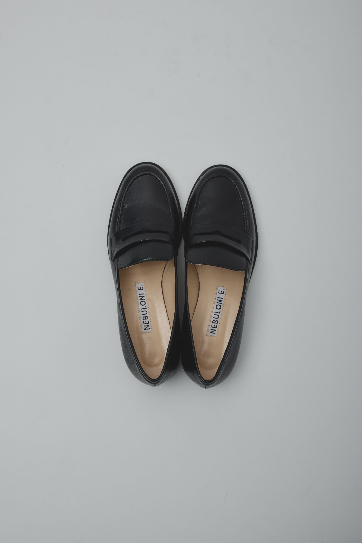 イタリアのシューズブランド「NEBULONI E.(ネブローニ)」にはローファーを別注。シンプルだからこそ浮き立ってくる上品な表情に老舗らしい味わいが感じられる。
