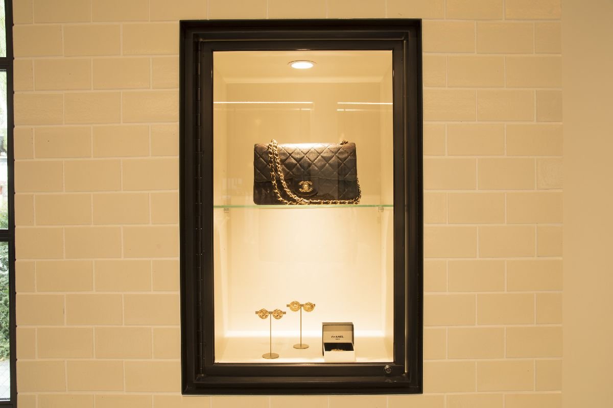 リニューアルのテーマは、城や館を意味する「château(シャトー)」。商業施設内の店舗だが表通りに面した路面店と変わらない立地特性を生かし、ファサードは白と赤の煉瓦で覆い、黒のスチール製の格子を配した扉やウインドー、エントランス脇に設置した小窓が、クラシカルでモダンなムードを漂わす。館内通路側のファサードも同じ設えへと刷新した。129㎡の店内は天井も高く、開放的な空間が時間の流れをよりゆったりとしたものに変える。内装は白と黒を基調に外から続く白と赤の煉瓦を壁面に配置し、各アイテムの色や柄、質感が映えるシンプルでクラシカルモダンな空間を生み出した。「MDやバイヤーが、自分たちが作り、買い付けたアイテムが並ぶ光景を思い描き、お客様の顔を思い浮かべながら、店舗設計部門と共に空間のイメージを組み立てていった」結果、ヨーロッパの館のようなラグジュアリー感がありながら加飾にならず、シンプルで商品が見やすい空間へと収斂された。什器やレジカウンターなども一新し、照明のみ18年前の出店時からあるシャンデリアを残し、ブランドの歴史を伝えている。