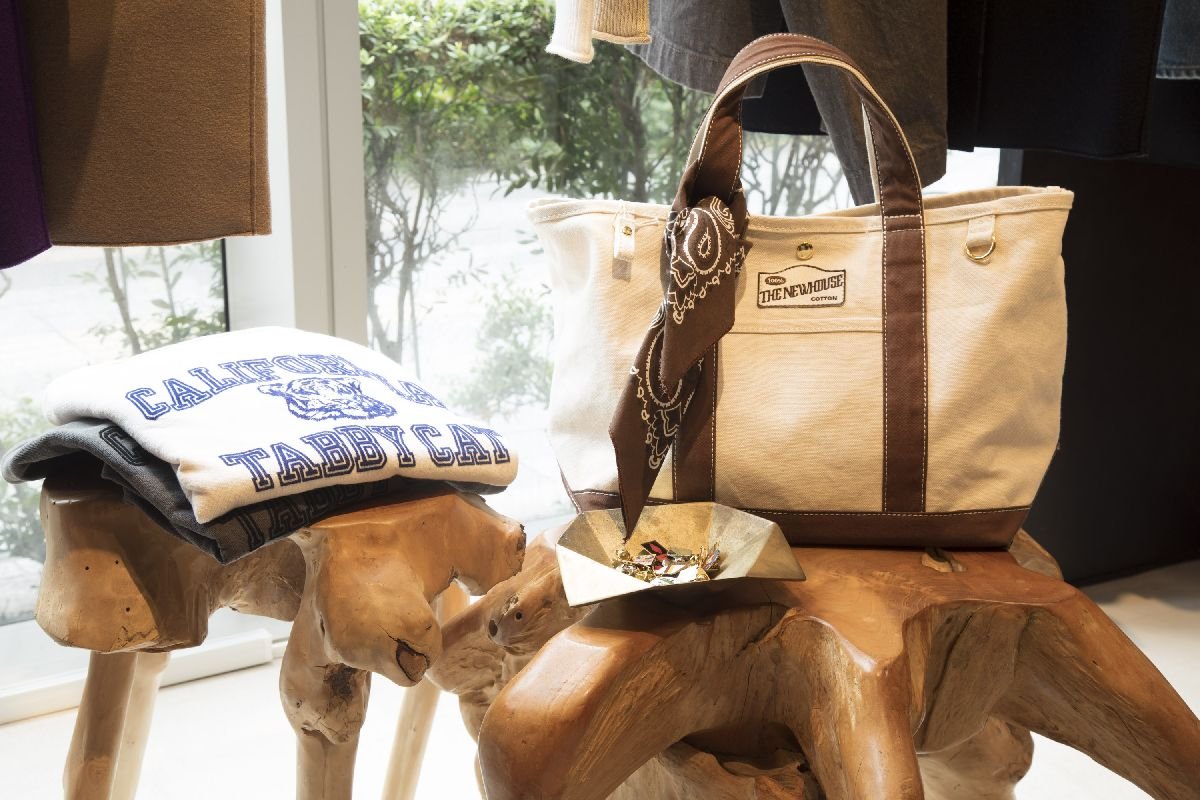 「THE NEWHOUSE(ザ ニューハウス)」は、「全ての頑張る女性=輝く女性の毎日に寄り添い、解放する服。心地よく、スタイリッシュでいさせてくれる究極にシンプルな服」を目指し、16年にデビュー。程よくゆとりのあるストレートシルエットと柔らかな風合いが人気のデニム「WORK JEAN(ワークジーン)」を、今回は別注カラーのブラウンで製作した。カジュアルなワークパンツでありながら品を備えた大人の女性のためのデニムだ。「LEON TOTE(レオントート)」は、白いキャンバス地のハンドルや底部にブラウンを組み合わせ、金具はゴールドでアクセントをつけた。ショルダーストラップは取り外しができるので、シーンに合わせた使い分けが可能。アクセサリー感覚であしらえるバンダナも付属する。別注のレオントート2型は早々に完売したがラブコールは熱く、年明けに追加入荷が決まった。
