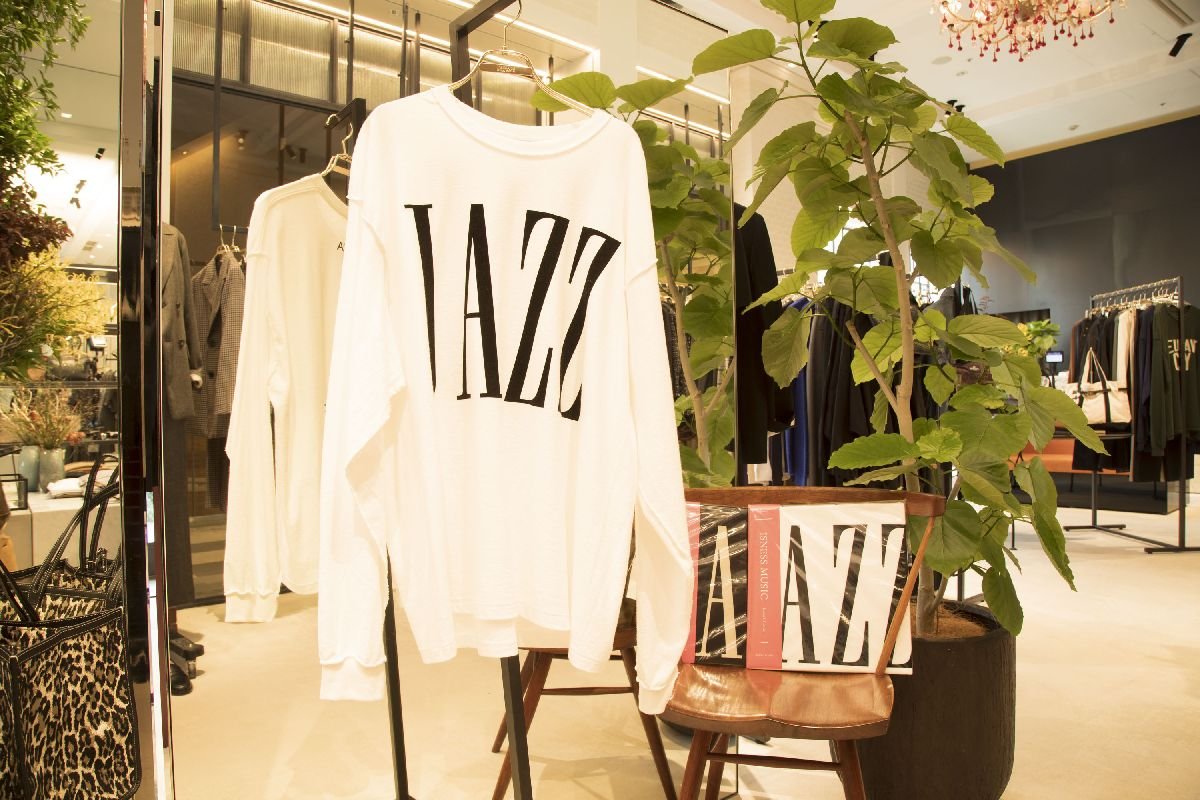 コンテンポラリー、技術、アート、ミュージック、ファッションを融合させたクリエイティブワークを展開する「is-ness(イズネス)」も、レサージュではお馴染みのブランド。今回は音楽カルチャーとファッションの融合を追求する派生ライン「ISNESS MUSIC(イズネスミュージック)」にロングスリーブTシャツを別注した。フロントには銀座をイメージした「JAZZ」のロゴ、バックには「GINZA」のワードやイズネスミュージックとレサージュのロゴなどをプリント。オーバーサイズでこなれ感のある着こなしを楽しめ、ユニセックスでも着用可能だ。レコードジャケットに見立てたパッケージで販売し、音楽へのこだわりと遊び心を覗かせる。