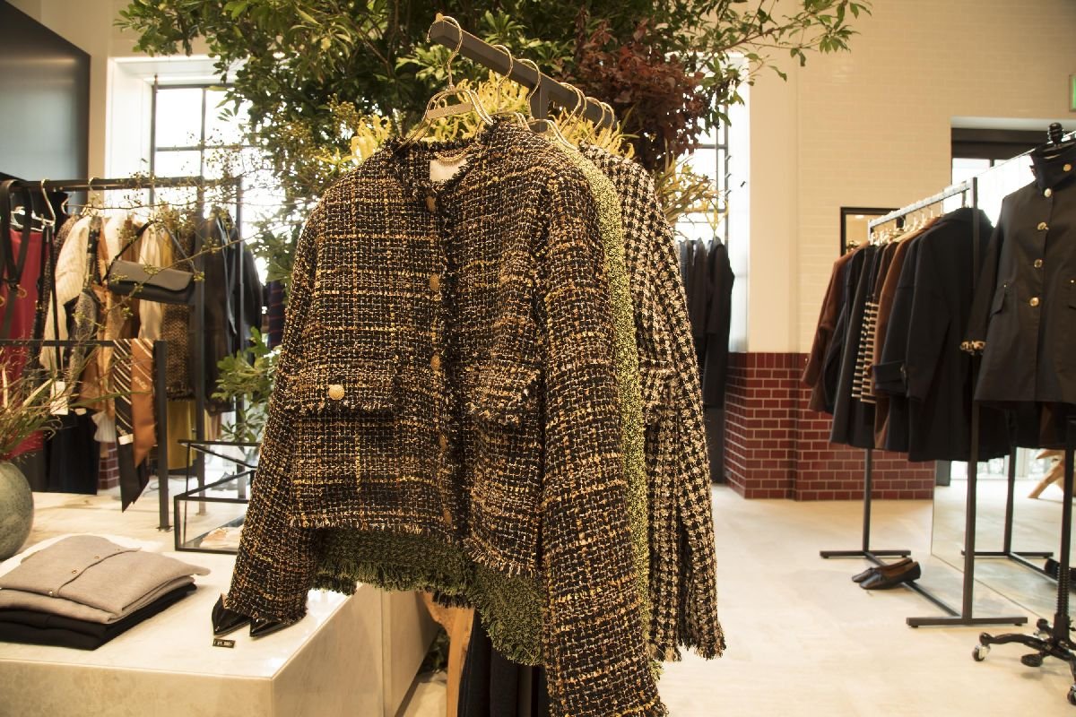 オリジナルでは数量限定アイテムを揃えた。「定番名品」として顧客の支持が厚いイタリアのファブリックメーカーGIOLICA(ジオリカ)社製の生地から、レサージュのネームタグにも使用しているアイコン「レオパード」柄のツイードを厳選し、ノーカラージャケット2型とロングコート1型を製作した。大胆な色柄ながらあくまで品が重視され、デニムやTシャツと合わせれば大人のハイカジュアルスタイルを楽しめる。「リニューアルオープン以降、このツイードアイテムを目当てにお越しくださったお客様も多く、3型とも瞬く間に完売」するほど人気のアイテムとなった。