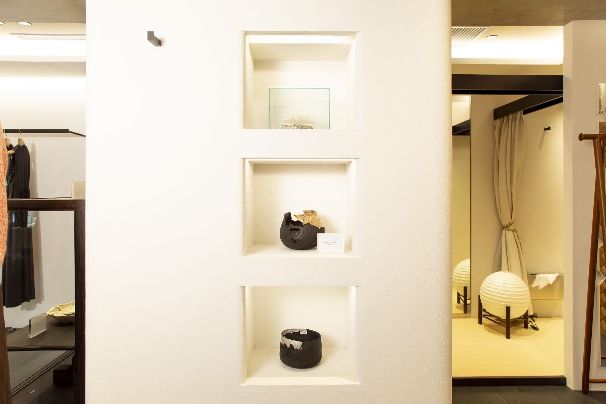 アート作品は滝野さん自身のセレクトや、懇意にしている六本木の「SMP GALLERY(エスエムピー ギャラリー)」とのコラボレーションで展開する。常設で展示販売するほか、不定期だが「現代アート展」として3週間ほどの期間で個展や企画展も開催する。墨と和紙による抽象画を描く溝口春菜さん、手漉き和紙で独自の「植物の形態」を生み出す石渡真紀さん、陶芸の既成概念を打ち破るアプローチで構造美を生み出す陶芸・造形作家の竹内紘三さん、朽ちていく木の美しさをその木に合った形へと落とし込む木工作家の五十嵐裕貴さんなど、気鋭作家の作品が揃う。「アートもファッションも、あっても無くてもいいものだけれど、『出会い』があるじゃないですか。出会ったら欲しくなるという衝動、共感を生むのがアートであり、ファッションだと思う」と滝野さんは話す。