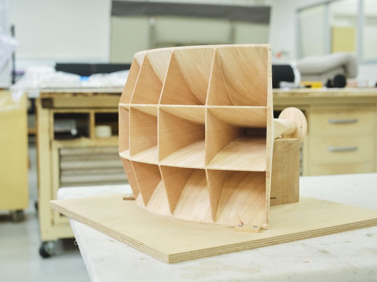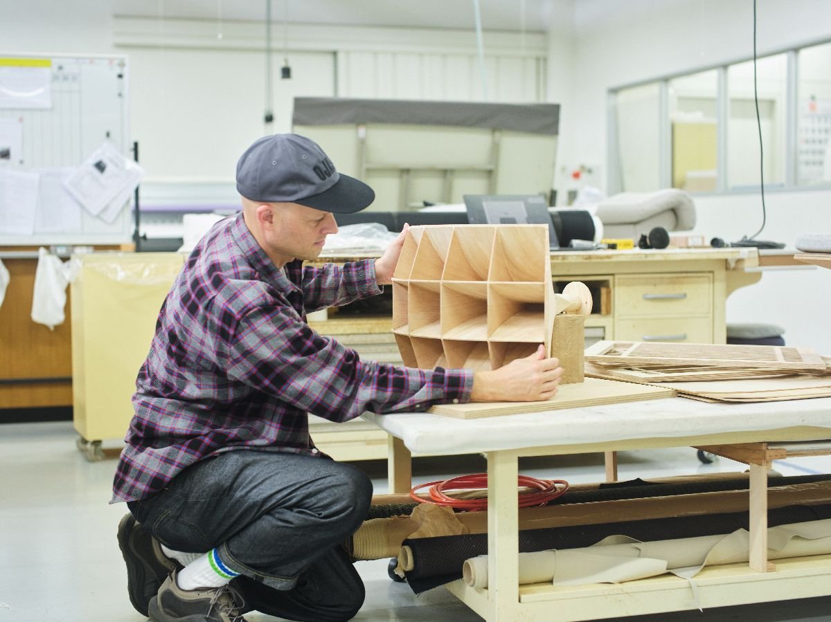カリモク家具の工場を訪れ、日本の高度な木材加工技術や突板の精緻な表現力に触れ、自身の音響哲学との強い親和性を見出した。合板を主材としていた従来のスピーカー製作に木工技術を取り入れることで、音響機器でありながら工芸的質感を備える新しいプロダクトが誕生した。