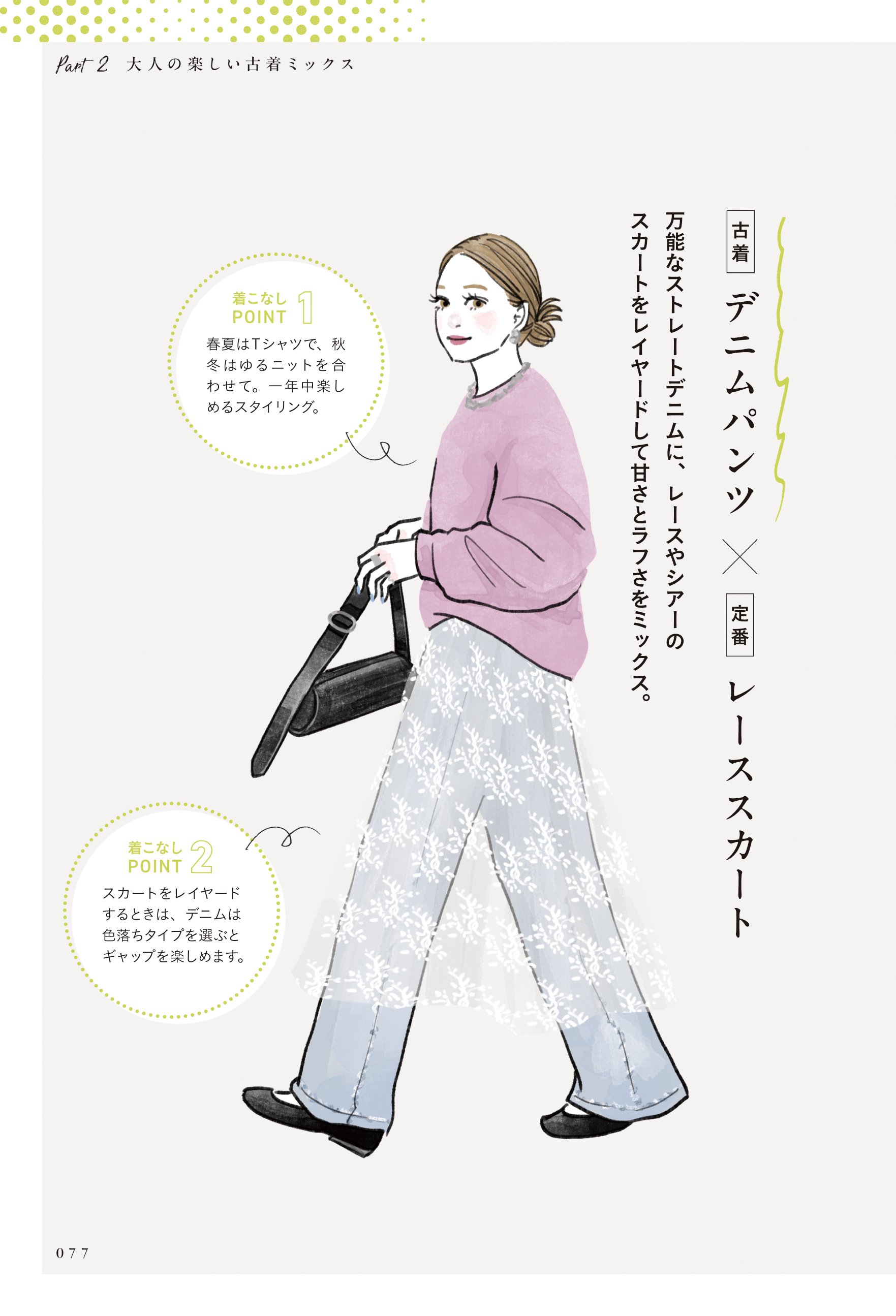 特筆すべきは、ターゲットを30〜40代前後の成人層に据える編集方針だ。忙しい日常を送りながらも「お金も時間もかけすぎずに、おしゃれでいたい」という現実的な願いに応えようとする姿勢が、実用書としての信頼感を高めている。若者のビンテージ文化とは一線を画し、大人の節度ある楽しみとして古着を位置づける点に、本書ならではの成熟した視点が光る。