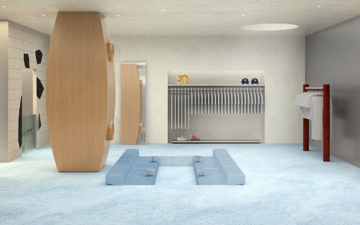 ロサンゼルスを拠点とするクリエイティブスタジオPlayLab, Inc.と共同で設計した店内は、ウェストハリウッド店で確立したビジュアルアイデンティティを継承しながら進化させた。 一層構造の空間には、シグネチャーであるブルーに染色したコンクリートフロア、ブラッシュドアルミニウム、セラミックタイルを使ったアートウォールを取り入れ、洗練されたデザインに仕上げている。