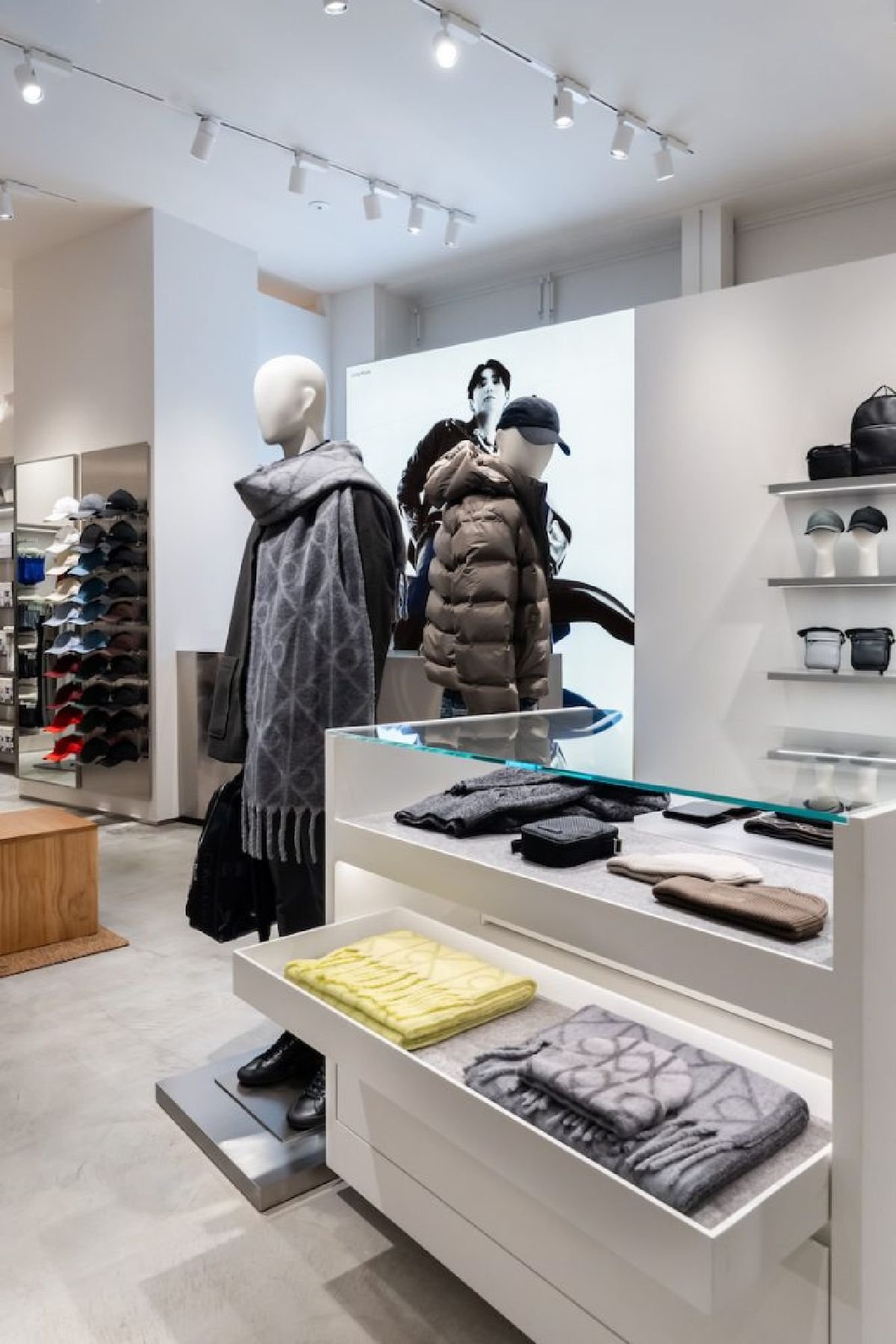 同店では、オープンを記念し、ホリデー限定ラインアップを揃えている。ウールベースのスカーフは起毛感があり、秋冬アウターのアクセントになるデザイン。アルパカブレンドのニットキャップは空気を含んだ柔らかな質感が魅力だ。4万円(税込)以上購入でジョングク着用オリジナルピンをプレゼントする特典も用意している。