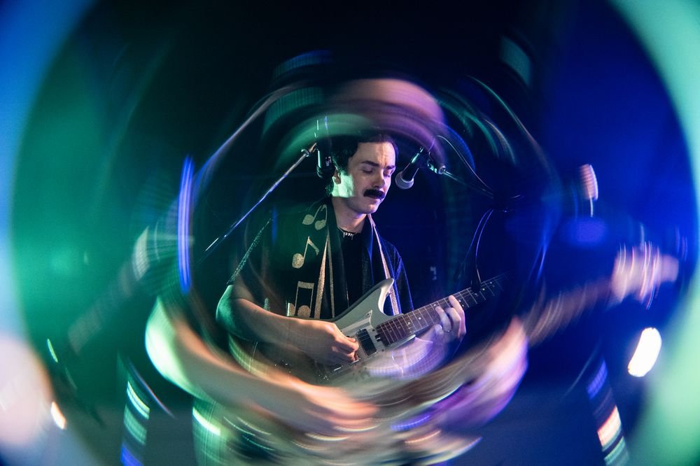 トップバッターは打ち込みのトラックを走らせ、歌い、固定したギターも操る謎めいたバックボーンを持つ一人ユニット、STAP Sigh Boys。プロフィールにあるように「電子レンジで溶かしたネオソウル」とか「一人ランダム・アクセス・メモリーズ(ダフト・パンク)」とか「高円寺のマック・デマルコ」という形容はどれも当たっていて、それらが融合した音楽性を感じる。洒脱なディスコチューン「君たちは宇宙生まれ」は曲調も相まって、“一人ダフパン”やマハラージャンを想起させる部分も。地声のパワフルさとファルセットに加えて唱法でユニークだったのが首を指で叩いてビブラートを起こすというもの。