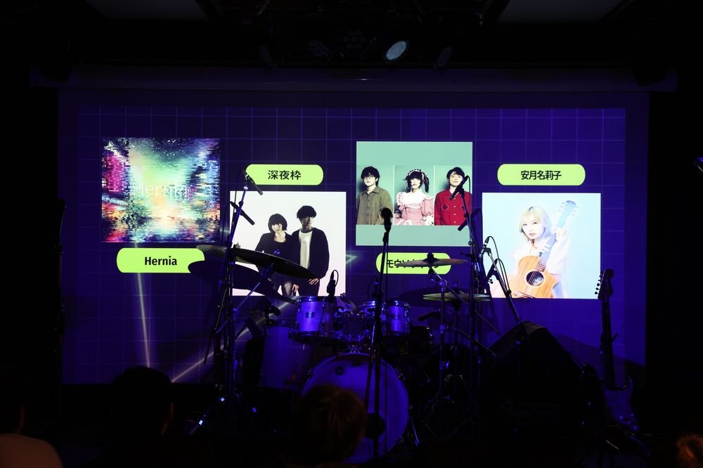 この日のトッパーは大阪を拠点に活動中の4人組バンド、Hernia(ヘルニア)。この日はピアノのメンバーが事情により不参加のため同期を走らせていたが、何よりの特徴は男女ツインボーカルが作り出す声の重なりが生むエモーション。エンタメポップな「夜詩メランコリック」はオーケストラヒットなどフックのあるSEもテンションを上げ、ちょっと懐かし味わいもある16ビートナンバー「scramble」ではボーカルYurielの起伏のある歌いこなしでフロアを惹きつける。展開の多いJ-POPらしさが海外チャートでも注目されることに納得の1曲だ。