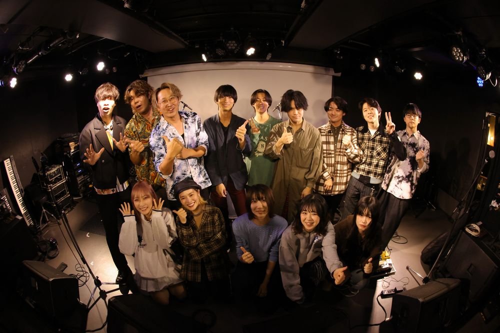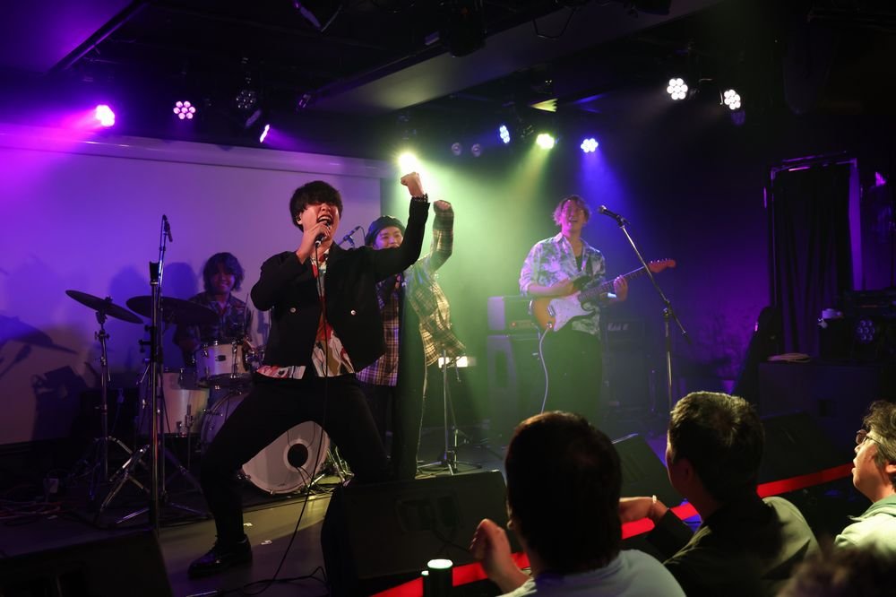 続いては「真夜中ポップ系」というコンセプトを掲げる兄妹ユニット深夜枠が登場。サウンドチェックの印象は技ありのポストロックの印象だったが、歌始まりの1曲目「ピエロ」でAmi(Vo.)の細かい譜割りを巧みに乗りこなすボーカルに一気に興味が集中。ギタリストで作詞作曲、アレンジやサウンドメイクも手掛けるAyatoの気の利いたオブリガートをはじめ、サポートメンバーの小気味いいライブアレンジも高いレベルにある。