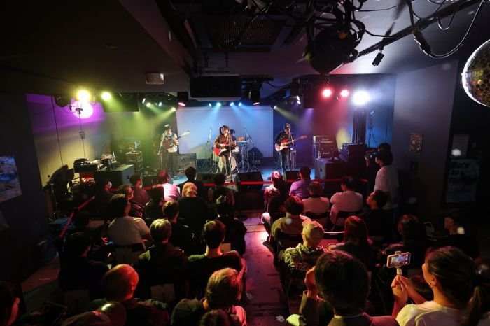 それぞれ異なるバックボーンを持つ専門学校の同級生で結成された彼ら。軽いセッションからポップな「モウソウメーカー」でスタートしたのだが、ギターの成瀬夢衣のオーセンティックなロックンロールギター、五弦ベースをグルーヴィに弾きまくるAsano、どんなポップチューンも歌いこなせそうなユウナはまさに三人三様。ジャズっぽいアレンジにも、終盤、ミュージカルスターか?と思しきパワフルな歌唱を聴かせたユウナにも軽くぶっ飛ばされてしまった。