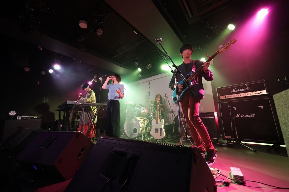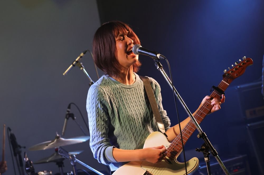 淡々とした歌唱が刹那の恋の終わりの描写をベタつかせず、むしろ乾いた怖さに転化するのもいい。その迫力は「強気の本音」でさらに高まり、ラストの「eye」ではAmiもテレキャスターを携えて、Ayatoとともに鋭いリフを刻む。マイナーの16ビートやグルーヴィな曲が続いてきた後のソリッドなロックをセットしたのも新鮮で、文学的だが青春を感じる歌詞とともに、「サイコかつポップ」を自認する世界観以外にも触れることができた。22歳と20歳とは思えないスキルと新世代のポップ解像度に大きな期待感を残した。