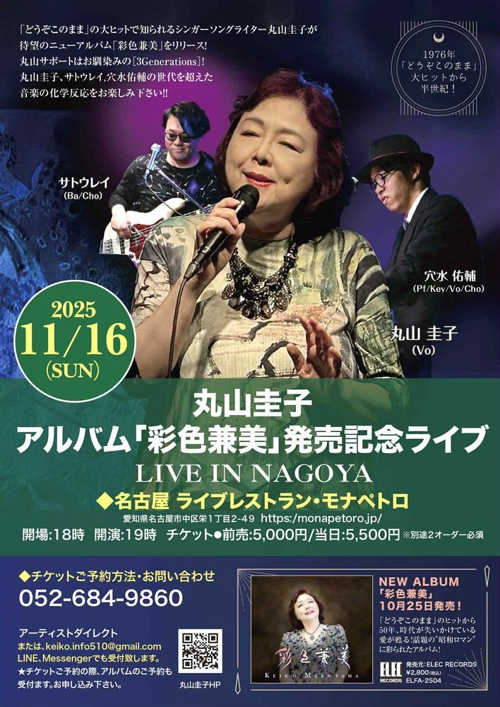 丸山圭子アルバム「彩色兼美」発売記念ライブ 詳細はこちら
