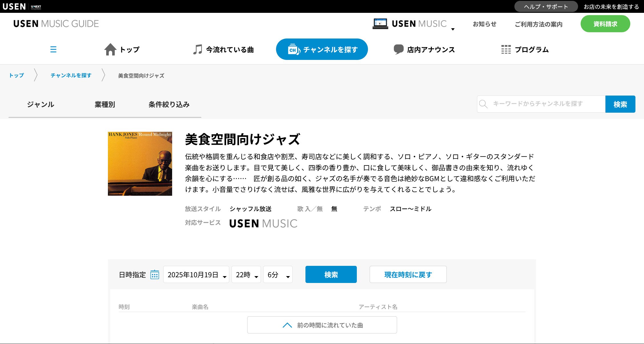 美食空間向けジャズ(USEN MUSIC GUIDE)