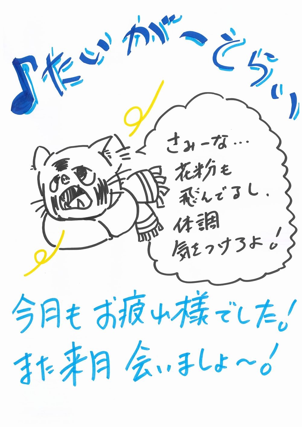 次回、2月放送の「若山詩音♪たいがーとらい」、お便りの締め切りは2月15日(日)です。