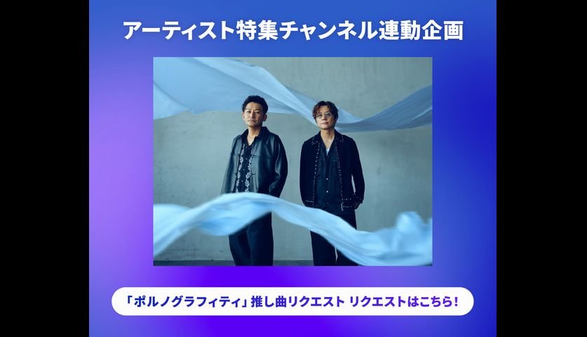 USEN 推し活リクエスト×アーティスト特集 WEEKLY 連動企画「ポルノグラフィティ 推し曲リクエスト」をテーマ別リクエストで開催中!投票は11/16(日)18:00まで!