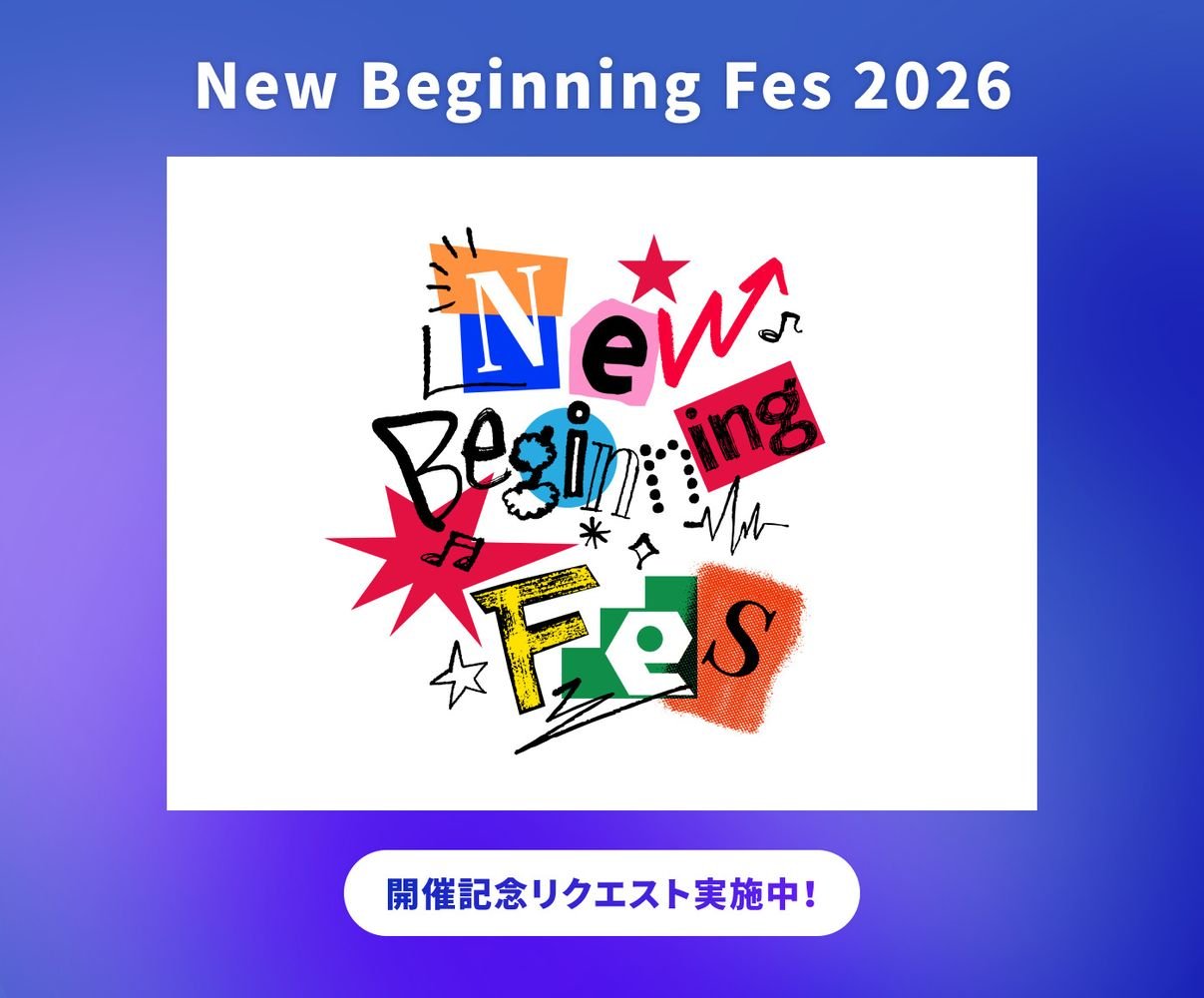 挑戦、出会い、そして未来への一歩をテーマにした新しい音楽フェス『New Beginning Fes 2026』の開催記念リクエストを実施中です!