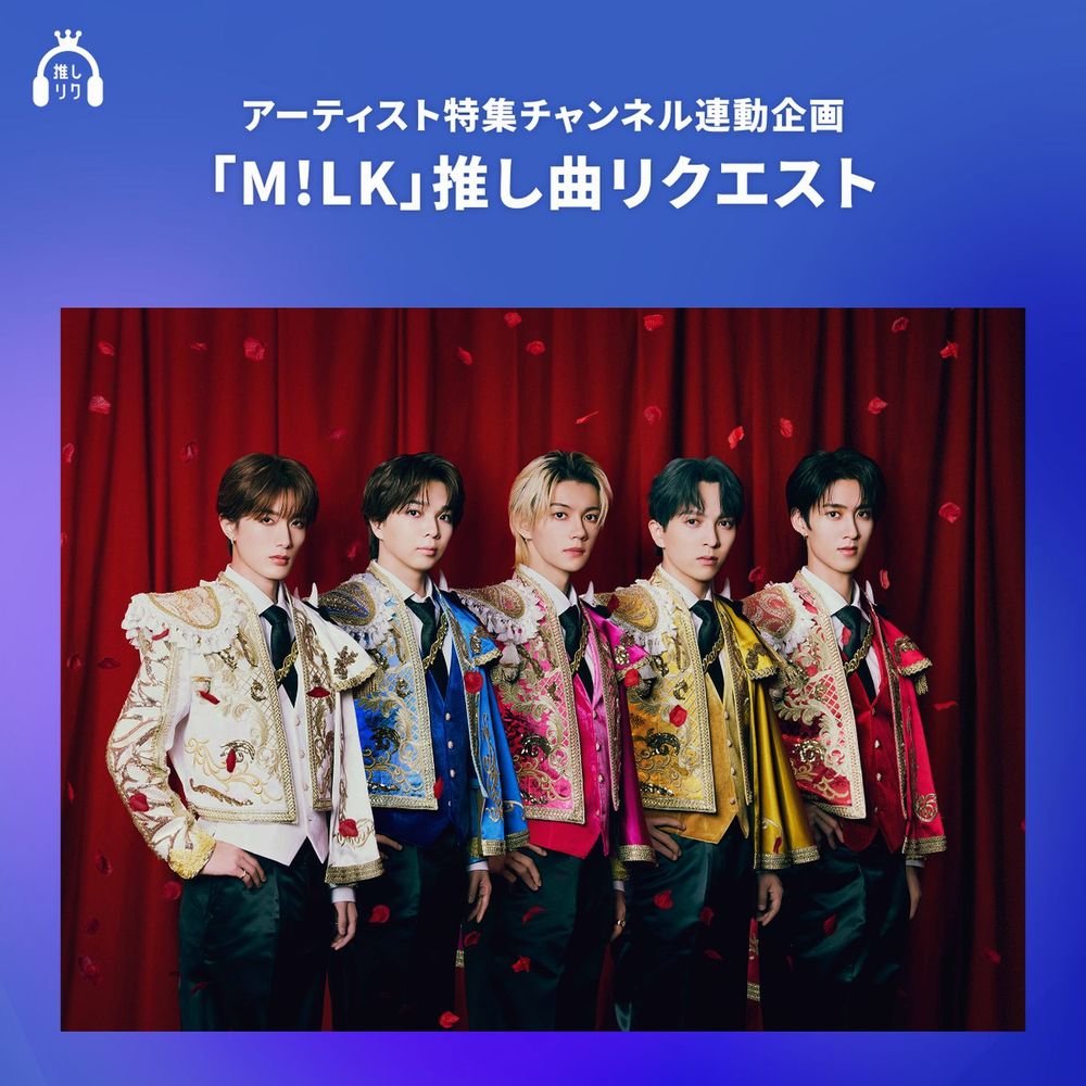 これまでのリリース楽曲すべてを対象に、USEN 推し活リクエストのテーマ別リクエストにて、USEN 推し活リクエスト×アーティスト特集 WEEKLY 連動企画「M!LK 推し曲リクエスト」が期間限定で開催中!