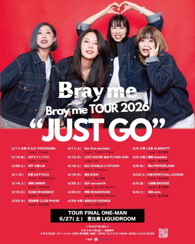 ──そんなアルバム『JUST』を携えたリリースツアー『Bray me TOUR 2026 “JUST GO”』が2026年2月からスタートします。