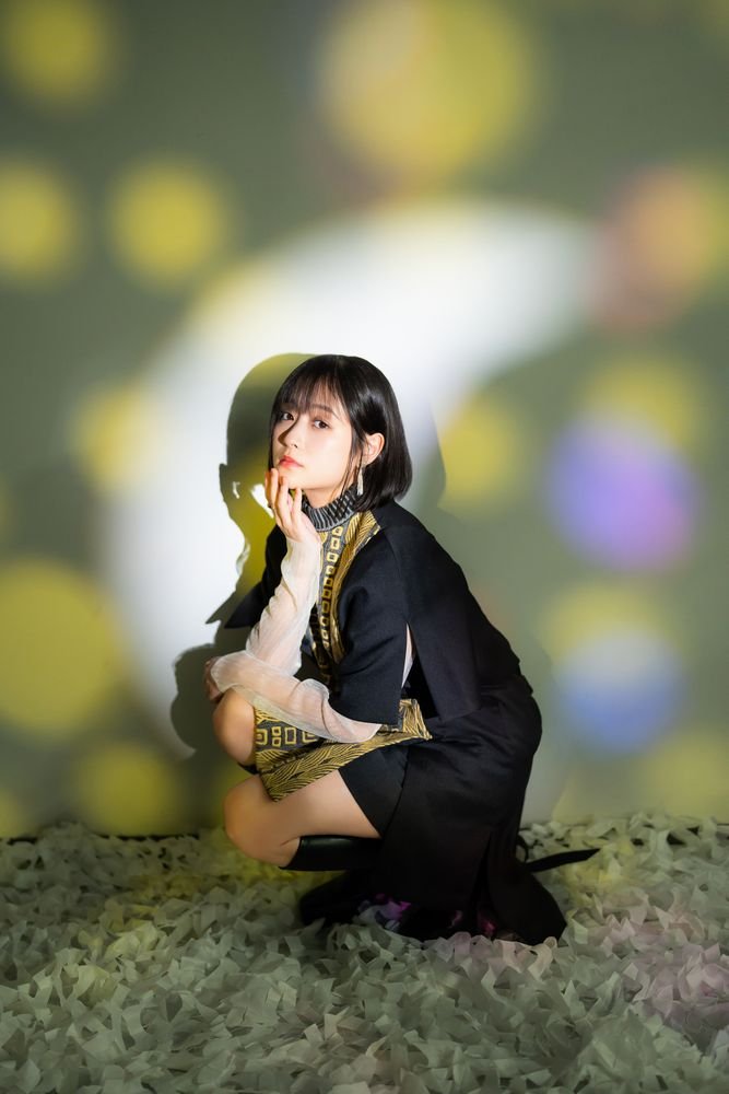 「今の私をシンプルに美しく撮っていただきました。個人的な見どころとしては、新しいギターを持って歌っているんです。ずっと憧れていた黒のアコギです。Takamineさんが、満開の桜ではない、夜桜をテーマにして、黒にピンクの桜を彩ったギターを作ってくださいました。アコギにもロックと優しさが入り混じっていて、みんなへのお披露目が楽しみです」