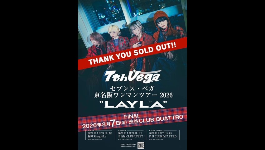 セブンス・ベガ初の東名阪ワンマンツアー「LAYLA」開催4カ月前に全公演完売!