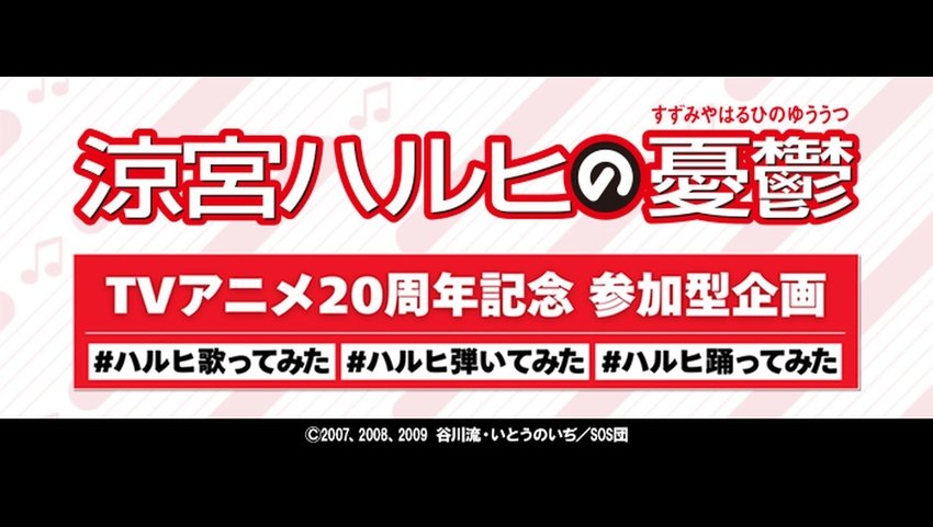 『涼宮ハルヒの憂鬱』 TVアニメ20周年を記念した参加型企画 「#ハルヒ歌ってみた #ハルヒ弾いてみた #ハルヒ踊ってみた」開催決定! 企画対象楽曲のリリックMVも公開!