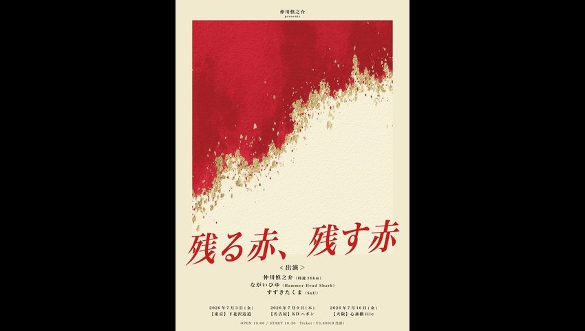 仲川慎之介(時速36km)、ゲストを迎えた東名阪弾き語りツアー『残る赤、残す赤』が7月開催決定!