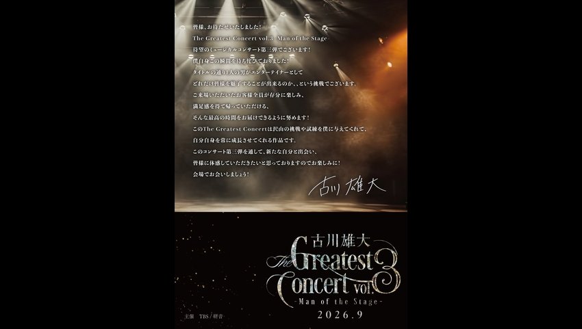 古川雄大 The Greatest Concert vol.3 - Man of the Stage -待望のシリーズ第三弾が開催決定!