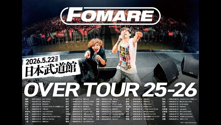 FOMARE、47都道府県ツアー「OVER TOUR 25-26」開催決定︕