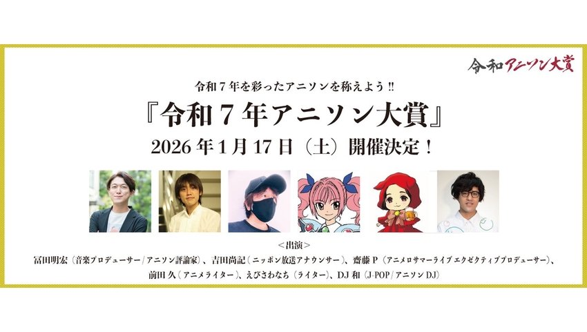 1年間のアニソンを振り返り、令和7年を彩ったアニソンを讃えよう『令和7年アニソン大賞』26年1月17日に開催決定!
