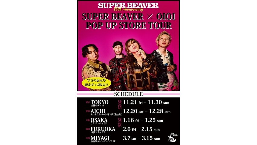 SUPER BEAVER、全国5都市を巡るポップアップショップツアーの開催が決定!!