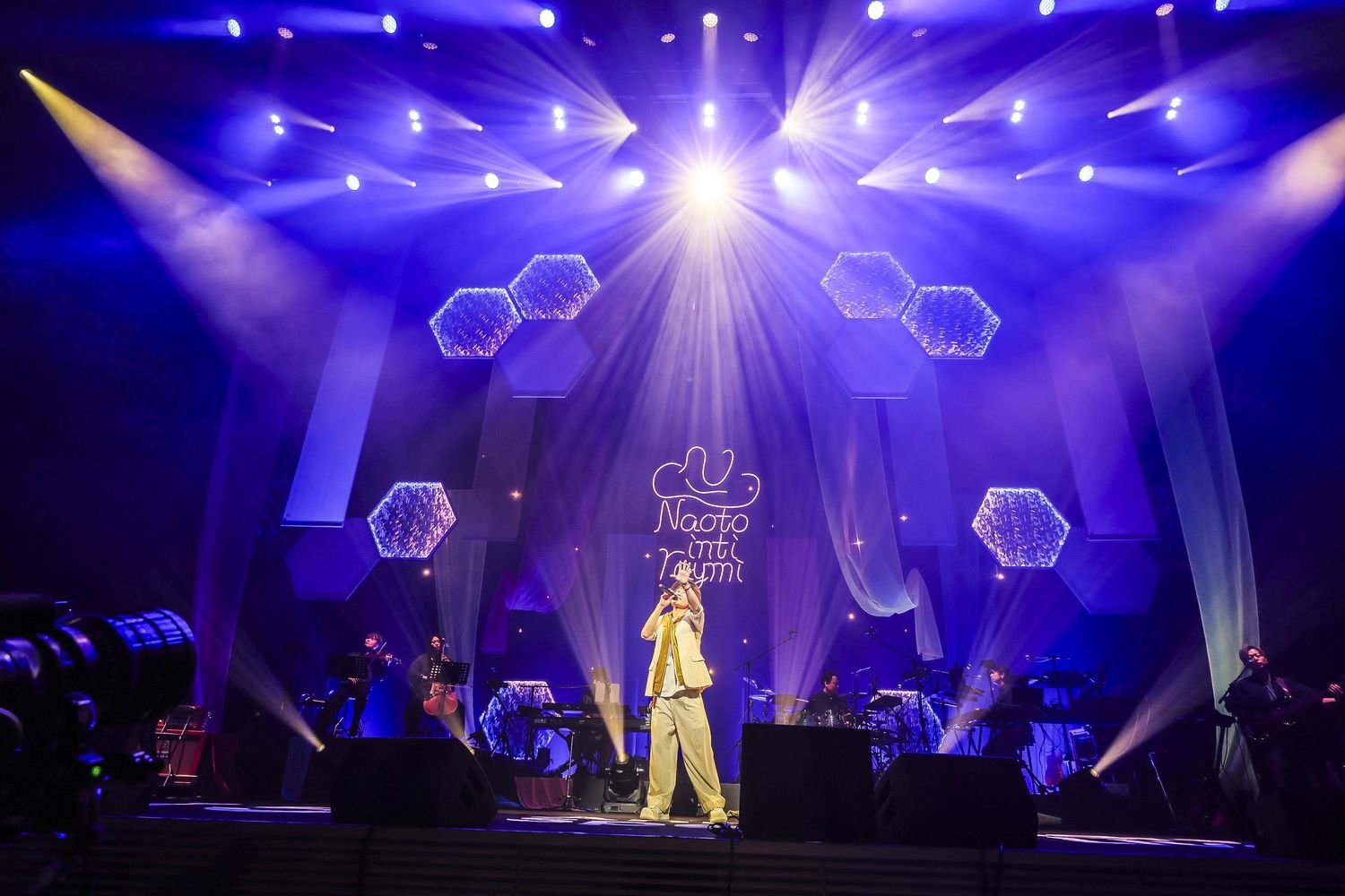 サポートバンドがファンキーな演奏で客席の熱を高める中、クラップを煽りながらナオトがステージイン。ライブは「アカルイミライ」で幕を開けた。この日の公演では、ナオトのライブ史上初の試みとして、生のストリングス(バイオリン、チェロ)が参加。お馴染みのサポートメンバーと共に、流麗かつ迫力あるアンサンブルを響かせる。MCによると、ストリングスをバンドに入れることは2020年の10周年のタイミングで計画していたそうなのだが、コロナ禍の影響を受けてライブ自体が中止になってしまったとのこと。「6年越しに叶えることができた」と喜ぶナオトは、時折ストリングスへ視線を送りながら、楽しげに歌を届けていく。