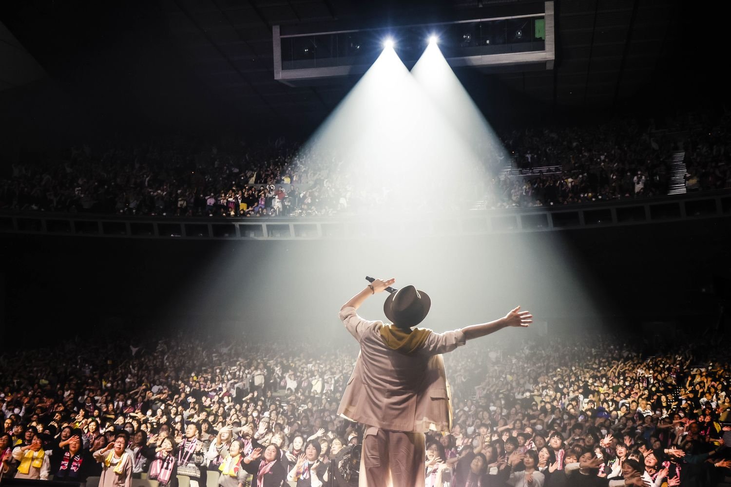 そこからミディアムナンバーの「アレコレ」や「たいせつな」で心地よく会場を揺らしていたのだが、いつものアッパーなオープニングとは異なるムードであり、意外な楽曲達の登場に、客席には少し様子を窺うような空気も漂う。そんな中、「今日はオマットゥリは封印します!」とナオトが宣言。「今日は楽曲と歌にフォーカスしていくので、そこを楽しんでいただけたらと。今日は初めてライブでやる曲もあります!」という発言に、客席からは喜びの声が上がっていた。この15年間、観客と熱い空間を生み出してきたナオトだが、時にはトリッキーなライブも行なってきた。この日もまた、予想外の展開で観客を驚かせる構成となっており、そうしたチャレンジ精神もナオトらしさと言えるだろう。