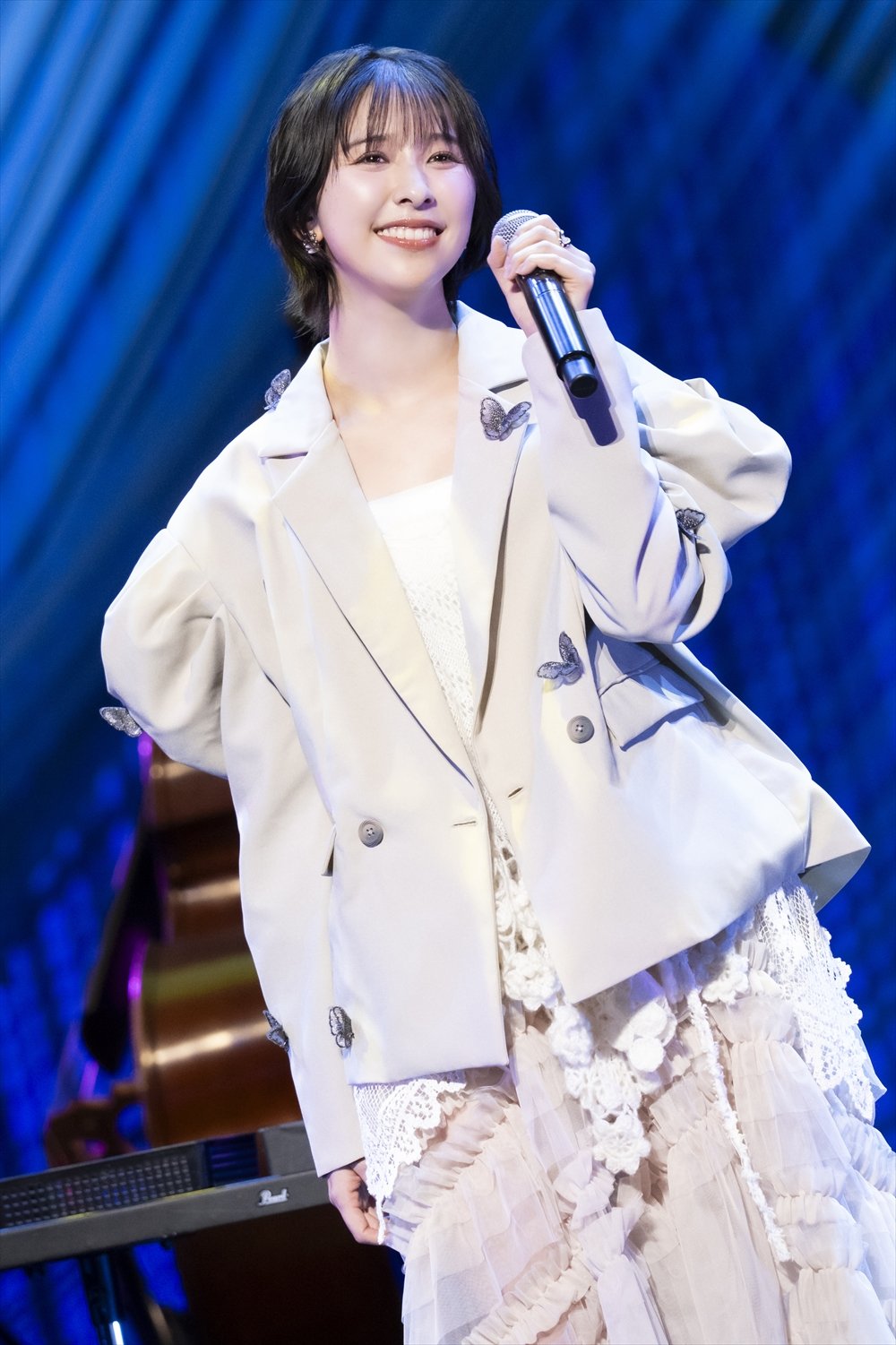 そして呼び込まれたのはトップバッター、大原櫻子。映画『猫の恩返し』主題歌、「風になる」の軽やかなイントロに乗せて、あたたかな歌声を響かせる。バンドマスターとして自身もピアノを奏でる武部をはじめ、バンドサウンドがとても心地好い。ステージ上のスクリーンには映画のイラストも映し出され、会場中がすぐさまジブリの世界へと誘われていった。さらに大原は「次の楽曲は、初めてカバーさせていただく曲です」と、映画『ホーホケキョ となりの山田くん』主題歌、「ひとりぼっちはやめた」を披露。ミドルテンポの弾むような歌声が幸福を運ぶように響いた。