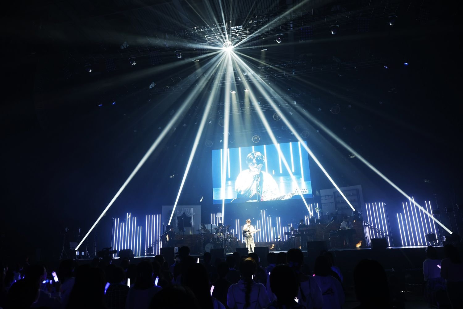 ブリッジムービーを挿み、バルーンこと須田景凪と初めてタッグを組んだ「ハートエイク」のアニメーションMVを背にしながら、その世界観に入り込むように感情たっぷりに熱唱すると、続いてはスムーズな美声が心地良い「ERROR」へ。