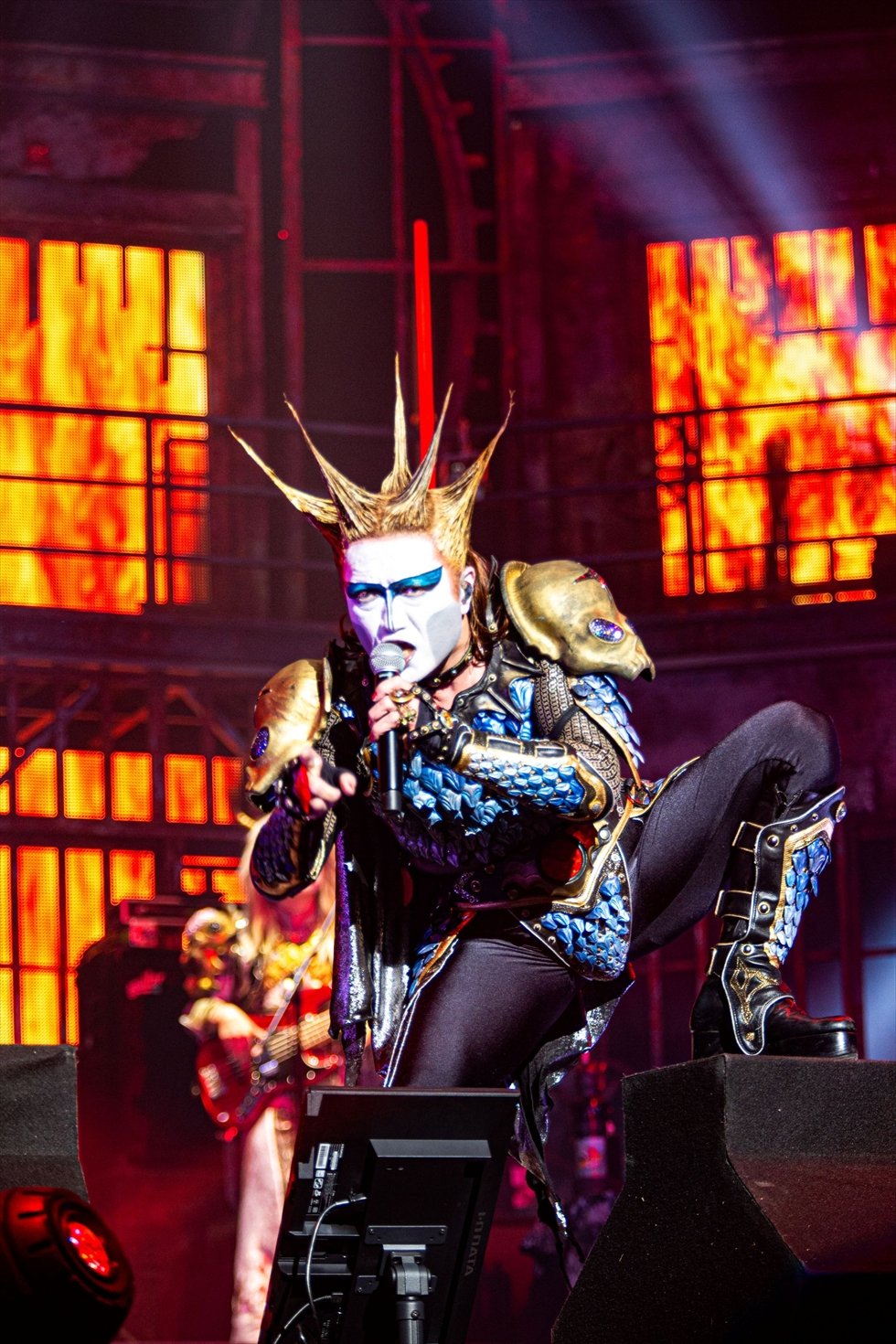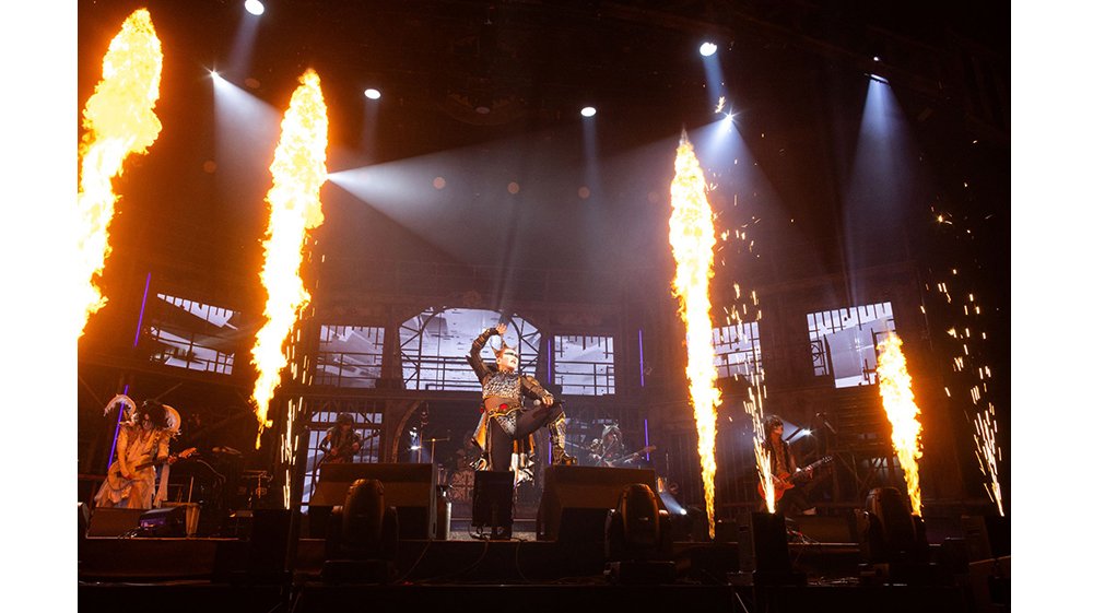 大黒ミサ中盤には構成員から信奉者へのメッセージが贈られ、その中で聖飢魔IIの歴史上初めてサポートギターとして大黒ミサに帯同したRENOファウストがルーク参謀から紹介されると、場内割れんばかりの歓声が送られた。RENOは聖飢魔II創始者であるダミアン浜田陛下に見出され、改藏人間となりヘヴィメタルバンド“Damian Hamada’s Creatures”のメンバーとなった。今回の聖飢魔IIの40周年ツアー前に発表された、ギターヒーローそして超絶テクニックを誇ってきたルーク篁参謀(G)の右手神経障害というコンディションの危機。同じさだめを背負う者として、ルーク参謀のギターパートを見事なテクニックで支え、立派にこの難局を共に乗り越えてくれたことに対し、構成員や信奉者からの熱い気持ちが会場中に伝わった瞬間である。大黒ミサ中後半は、35周年++のツアーで初参加し、サポートピアノ&キーボードとして今や信者の心をしっかり掴んでいるKAMISO RI SYUTOの幻想的な独創ピアノ曲から、魔暦27(2025)年7月2日に発布されたCD大教典を中軸に「Kiss U Dead Or Alive」「有害ロック」「老害ロック」を立て続けに披露。さらに「Next Is The Best!」へつなぎ、本編ラストとなる「FIRE AFTER FIRE」では壮観な火柱が立ち上り、大黒ミサは熱狂のまま本編が締めくくられた。