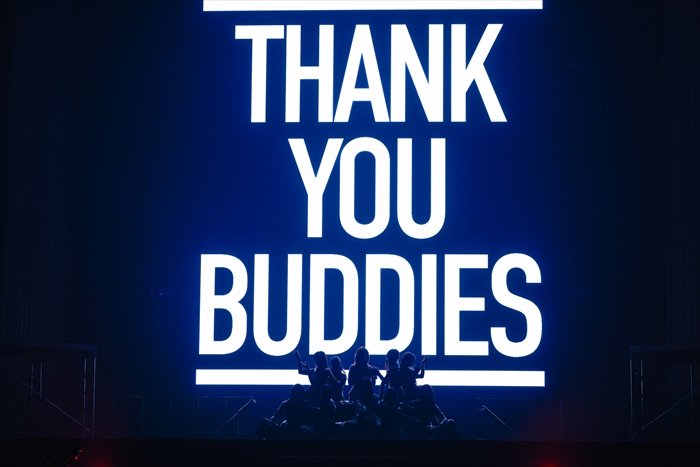 MCでの和やかな空気も小島センターによる「僕は僕を好きになれない」が始まると、彼女の真剣な表情と全身から醸し出される気迫で一変。中盤では情熱的で激しい長尺ソロダンスパートも用意され、ライブがクライマックスを迎えようとしいていることを窺わせる。そして、大沼の「どっちが先にぶっ倒れるか、勝負だ!」という煽りから「もう一曲 欲しいのかい?」に突入すると、メンバーのギアも数段上がり、アグレッシヴな歌とダンスでBuddiesを圧倒。これに応えるように、客席のBuddiesも全力のクラップで場を盛り上げていく。ブレイクパートでは大沼が「足りねえよ、勝つ気あんの?」と挑発する場面もあり、ライブは最高潮へと近づいていった。