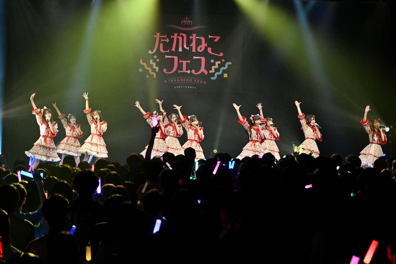 また、このイベントからたかねこの衣装も新しくなり、これまでの制服っぽいイメージのある衣装から一転、白地に赤い花をあしらった生地でフリルやパフスリーブ、そして大きめのヘアアクセサリーで、メンバーそれぞれの個性に合わせたスタイル。