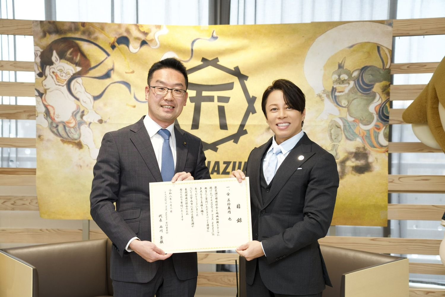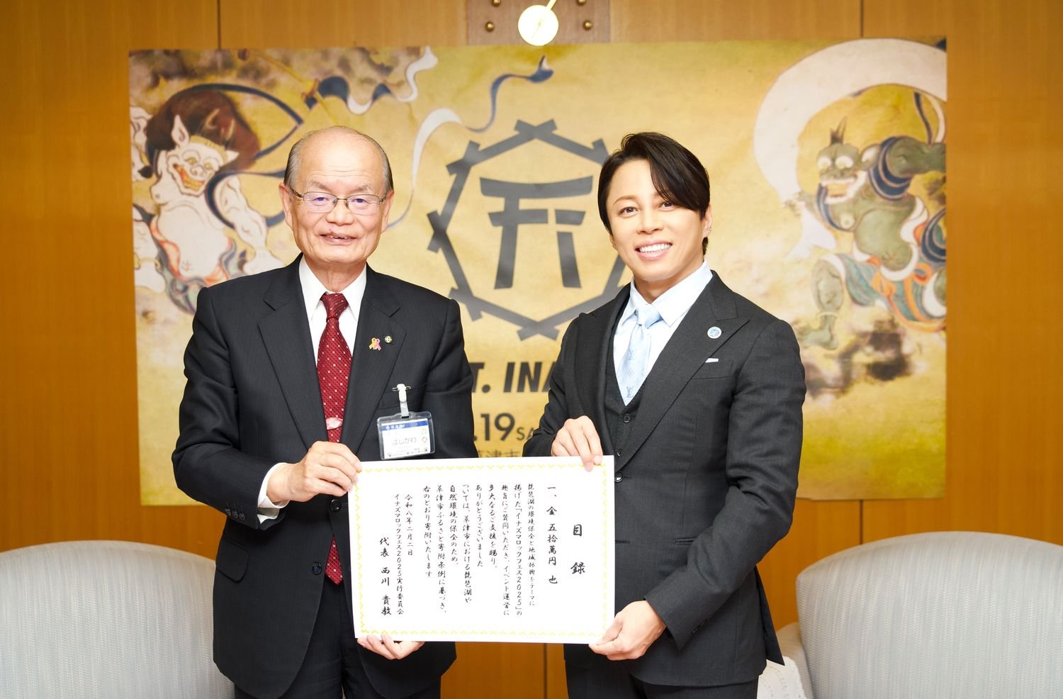 さらに、昨年開催した「イナズマロック フェス 2025」の収益の一部2,500,000円と、会場で実施した琵琶湖環境保全のための募金全額133,560円を合わせた計2,633,560円を、「マザーレイク滋賀応援基金」へ寄附した。