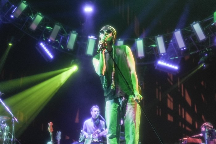 そこから一転、菅田が銅鑼を打ち鳴らすと、越智俊介(Ba.)のファンキーなベースソロを皮切りにセッションがスタート。EP随一のキラーチューン「I’m in shock!!」、続けてタイヘイ(Dr.)のドラムソロから「骸骨は踊る」が披露され、グルーヴィーなバンドサウンドが会場全体を”チル”な空気で包み込んだ。