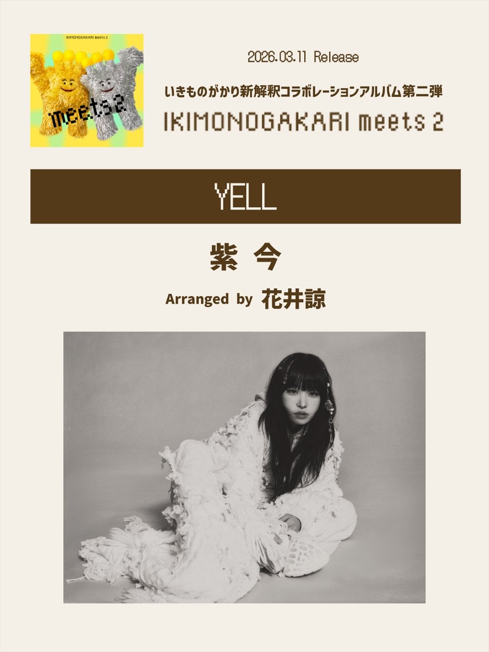 3/11(水)に発売となる、いきものがかりの新解釈コラボレーションアルバム「いきものがかり meets 2」へ、紫 今が参加することが決定しました。