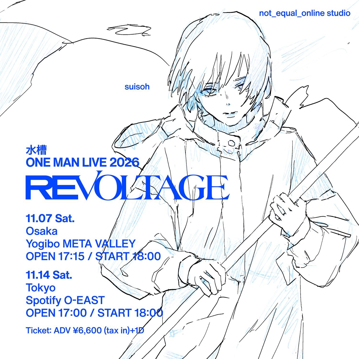 『水槽 ONE MAN LIVE 2026 "REVOLTAGE"』は自身初となるバンドセットのワンマンライブとなり、2026年11月7日(土)に大阪・Yogibo META VALLEY、2026年11月14日(土)に東京・Spotify O-EASTで開催いたします。チケット最速先行受付が早速開始となっておりますのでお早めにチェックしてください。