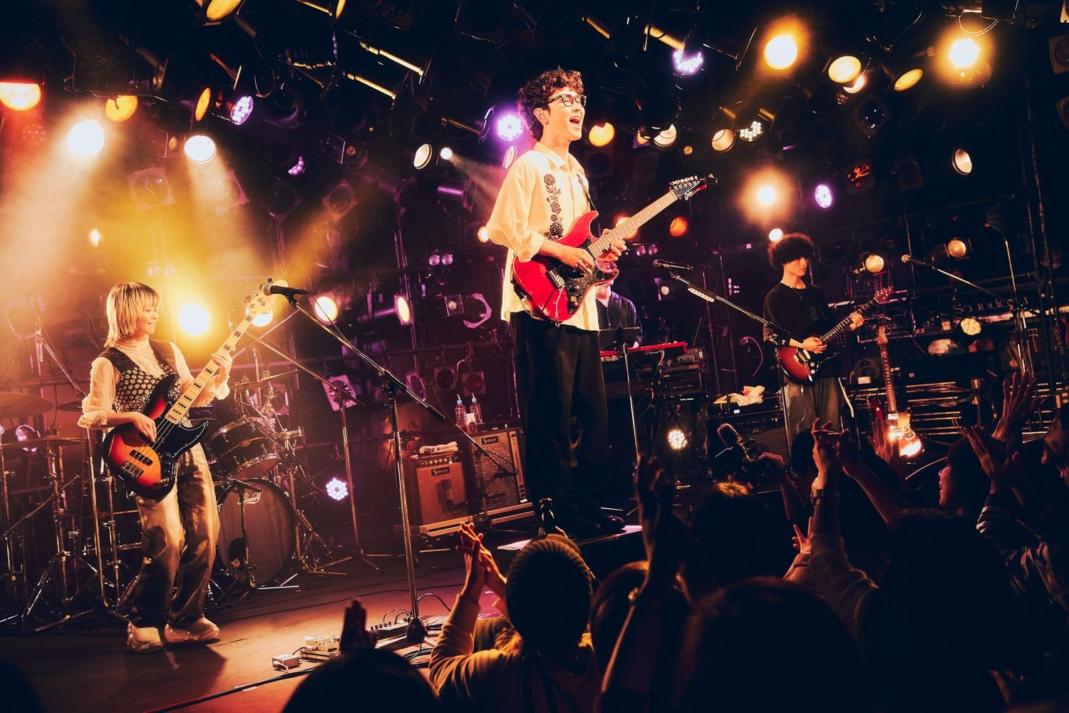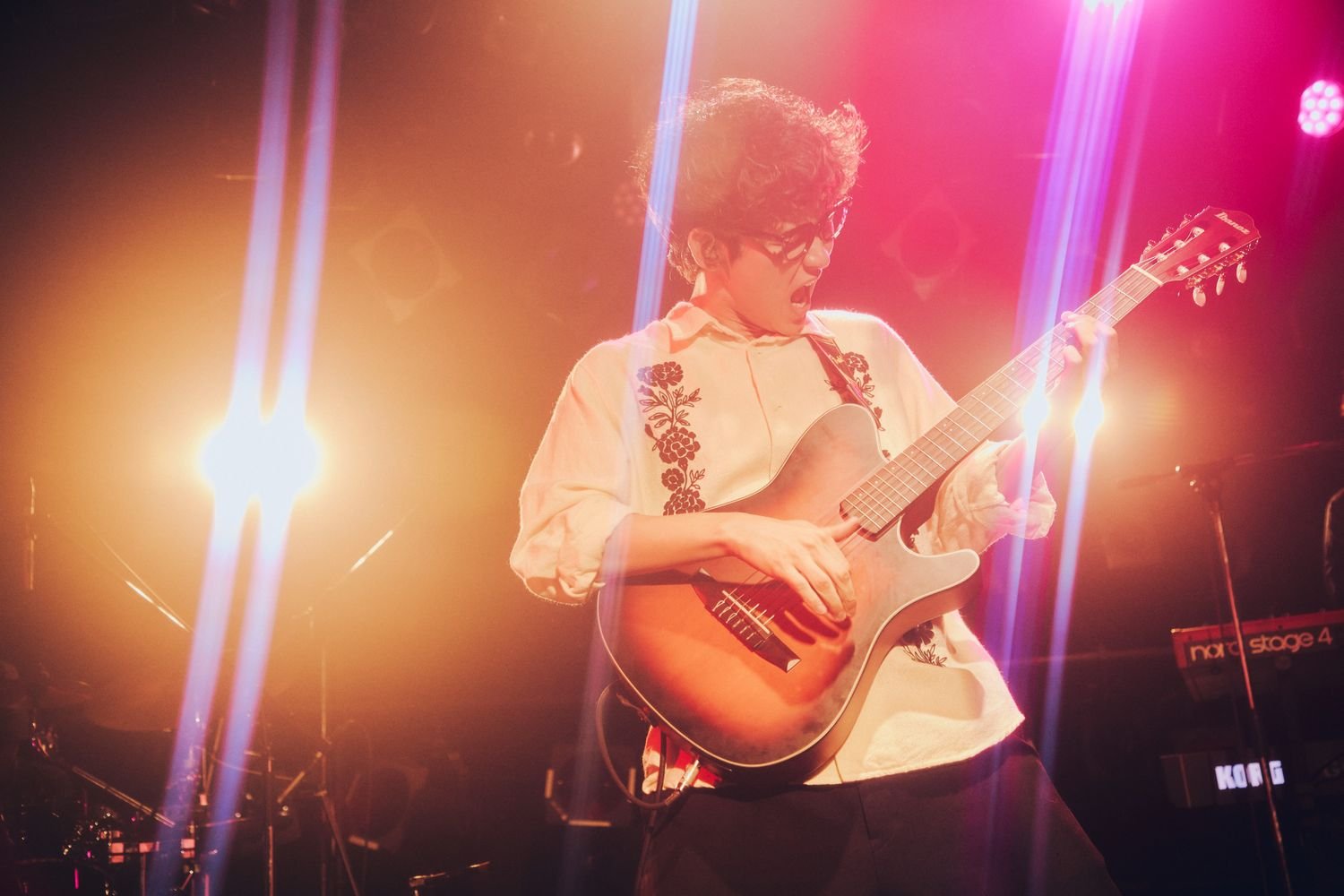ここで森は、「REBORN」というテーマにちなんだ新曲を用意してきたことを伝える。その曲は、故郷・知床羅臼町の原風景、大自然のピースフルな空気を表現した曲とのことで、彼は「一番自分らしいのかな。」と告げていた。会場全体に期待のムードが満ちる中、新曲「ラウシ」を披露。美麗なファルセットを交えたたおやかな歌は、雄大に広がる大自然の景色を想起させる。また、曲全体を通してダンサブルなビートが際立っているが、同時に温かい心地よさも感じる。ここが渋谷のライブハウスであることを忘れさせてくれるような名曲にして名演だった。その後、杉本との2人編成で、「雪の銀河」「明日で待ってて」を披露。歌とアコースティックギターとキーボードのみというミニマムな編成ではあるが、豊かな奥行きと深みを感じさせるライブパフォーマンスに強く引き込まれた。次に、5人編成に戻り、「いつか僕らは〜I Left My Heart in Rausu〜」へ。冒頭の2曲を除いて、ここまではアコースティックギターとガットギターを奏でていた森だが、この曲の間奏でエレキギターに持ち替え、渾身のソロをかましてみせた。ハイフレットにおいて何度もチョーキングを繰り返すプレイが最高にエモーショナルだ。
