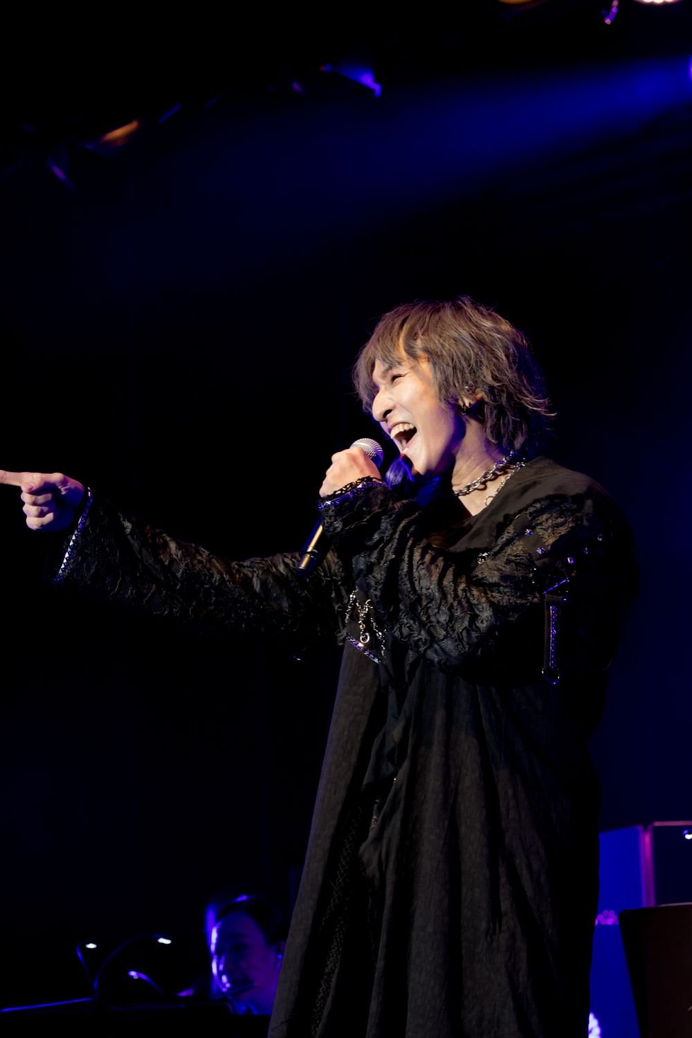 「辺境の剣」「魔を統べる少年」「化身舞闘」「赤い月」「紅の一戦」「踏み出した一歩」と楽団が豊かな演奏で冒険の始まりから戦闘シーン、村への帰還までをドラマチックに紡ぐと、盗賊に扮する朝霧と西田の会話劇に、生田演じるアスモデウスが参加する。観客も3人の台詞や盗賊団の遊び心たっぷりのパフォーマンスに反応するなどして、ともに物語を盛り上げた。ファニーな雰囲気から一転、「未踏地の冒険」「死生の彼岸」とシリアスなムードの楽曲の演奏が続くと、生田がステージに登場して「混沌より愛をこめて」を歌唱する。間奏では振り付けを用いて、アスモデウスの持つ芯の強さと優雅さ、繊細さを感じさせる歌唱で会場を魅了した。