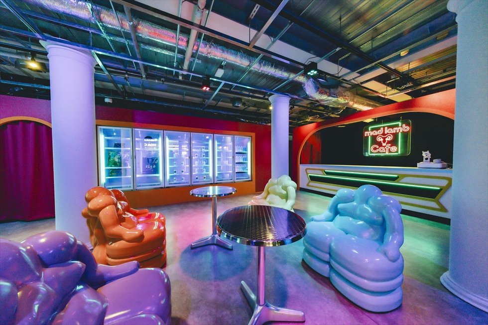 「mad lamb café」という架空のカフェをテーマにした会場では、その世界観を体験できる装飾、音楽が流れ当企画のために用意されたドリンクも販売。加えて、ストアロゴや当ストアのために描き下ろされたキャラクターをモチーフにした多数のアイテムも手に入れる事ができる。POP-UP STOREならではのホームグッズやアパレルなど、コンセプトに合わせてこだわりをもって制作された新アイテムが、バラエティー豊かに展開されている。