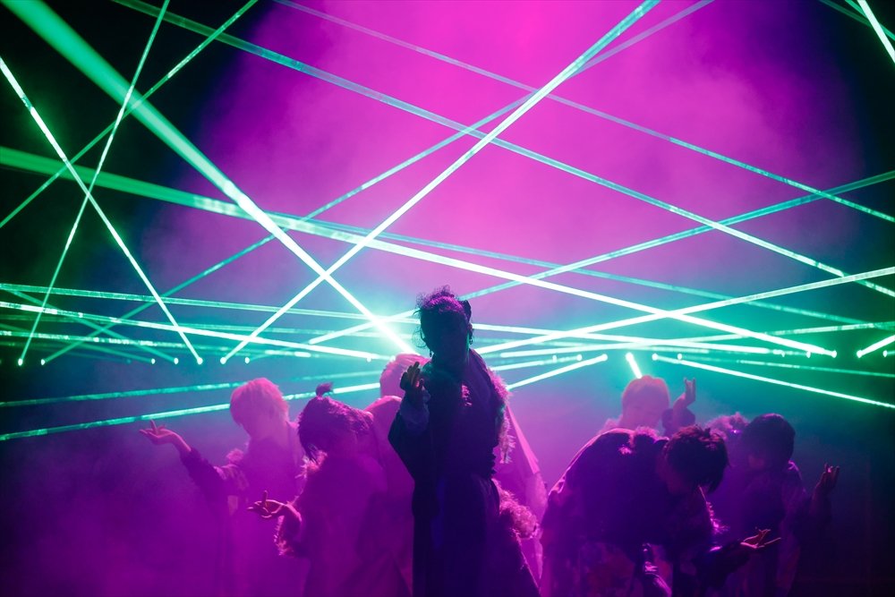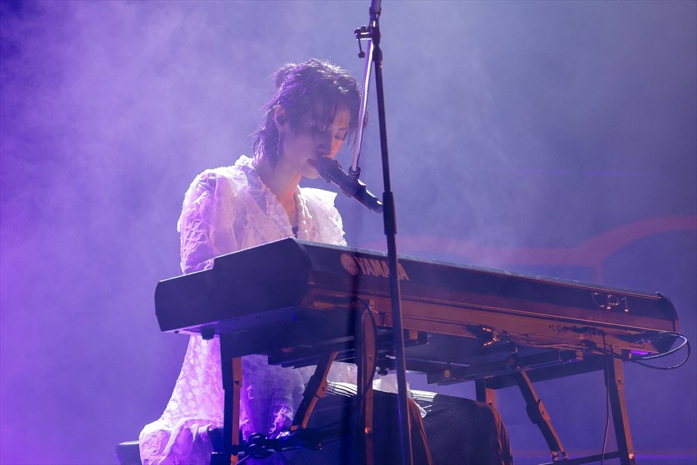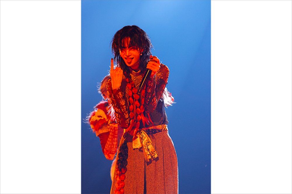 DAY-1では、「龍宮城へ、ようこそ」という言葉を合図に『OSHIBAI』からスタート。Rayが「対戦、よろしくお願いします」と言い放ち『SAIGI』『裏島』『あっかんべ』と立て続けに披露し会場を一気に独自の世界観へと連れ込んでいくと、ビジョンには楽曲の世界に入り込んだ彼らの表情が映し出されていく。憑依したかのような彼らの表情は覇気に満ちていて美しさを帯びたかと思えば、時に愛くるしく笑ったりとその表現力は圧倒的だ。